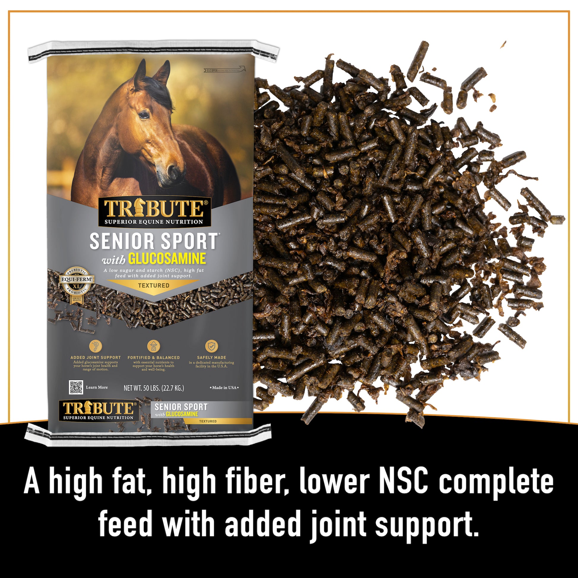 - Added glucosamine (2500 mg/lb) supports your horse's joint health and range of motion.